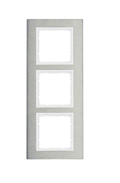 - B.7 Cadre triple vertical, acier inoxydable/blanc mat Berker