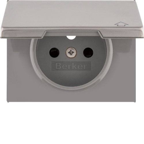 K. Plaque centrale pour prise avec terre et clapet, acier inoxydable Berker