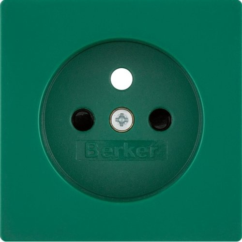 - Plaque frontale avec obturateurs de broches pour interrupteur + terre, pour circuits spéciaux, vert, velours Berker