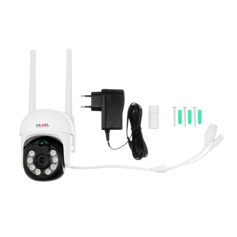 Caméra sans fil WI-FI équipée d'un moteur (PTZ) lui permettant de pivoter (320 degrés horizontalement et 90 degrés verticalement). Des images claires sont fournies par un capteur de 3 MP (2048 x 1536 px). La communication à distance avec la caméra via Internet se fait à l'aide de l'application TUYA installée sur n'importe quel smartphone ou tablette fonctionnant sous Android ou IOS, ce qui permet de visualiser l'image actuelle de la caméra et les séquences enregistrées, ainsi que de contrôler la rotation de la caméra. La caméra est équipée d'un éclairage nocturne par LED ordinaire et infrarouge (commutable d'un éclairage à l'autre). La caméra est également équipée d'un haut-parleur et d'un microphone permettant la communication vocale (écoute des sons captés par la caméra et envoi de messages vocaux diffusés par le haut-parleur de la caméra). Les enregistrements sont enregistrés sur une carte mémoire (uSD) qui doit être installée dans la caméra.