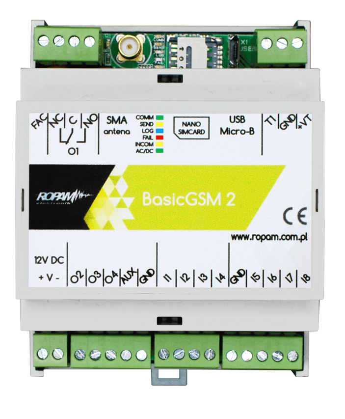 - Module de communication GSM, 12VDC, TELx8, , BIx8/AIx2, BOx4, SMS/CALL/E-MAIL, TEMPx1, DIN 4M