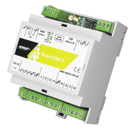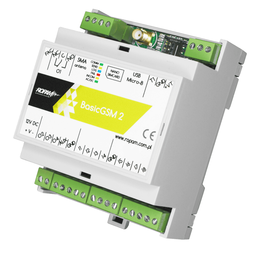 - BasicGSMD4M : alimentation 12V/DC avec contrôle de la tension DC (<11V), module en boîtier rail DIN