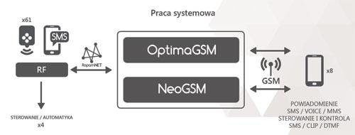 • combiné avec NeoGSMIP(64) ou OptimaGSM RF4 crée un système d'alarme flexible contrôlé par des télécommandes radio,