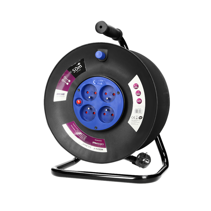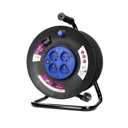 - Enrouleur de câble de rallonge, 4 prises 2P+Z, câble PVC H05VV-F 3x1.5mm2, longueur 50m, thermique, stores de circuit de courant.