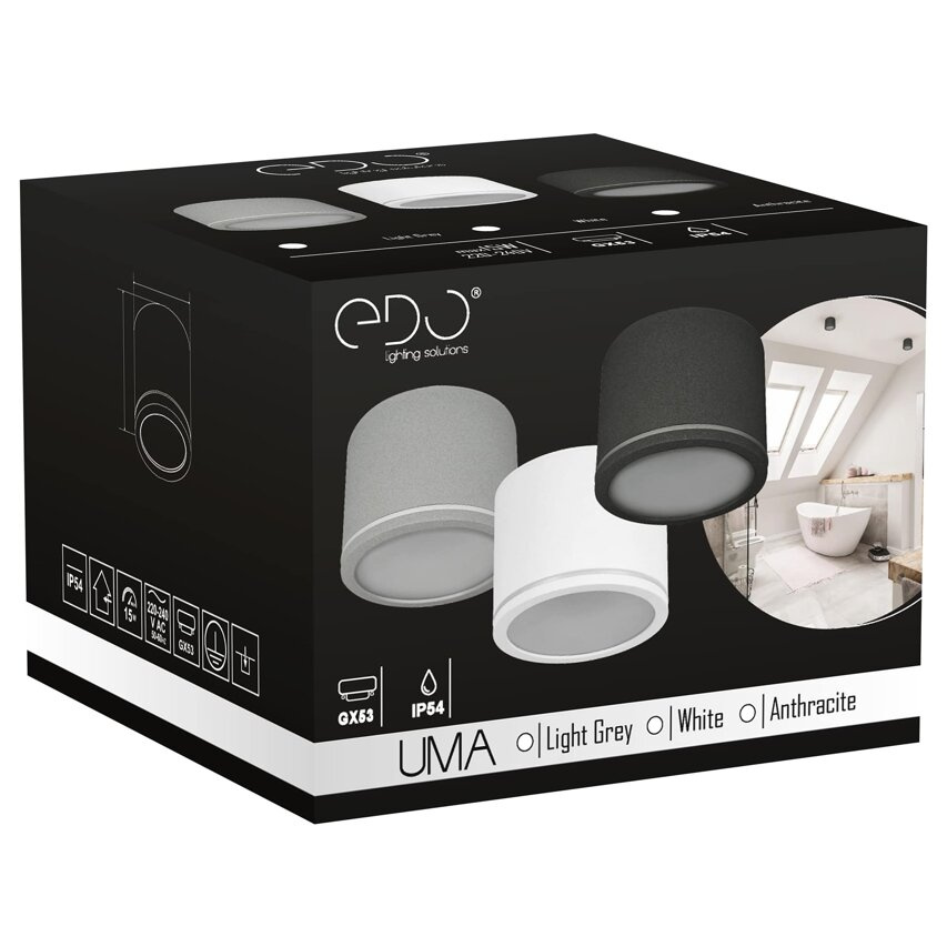 Luminaire de salle de bain UMA, GX53, IP54. Rond, Anthracite. Luminaire apparent avec un IP élevé (IP44), idéal pour une utilisation dans la salle de bains. Lumière uniforme et non éblouissante. S'intègre dans la plupart des intérieurs.