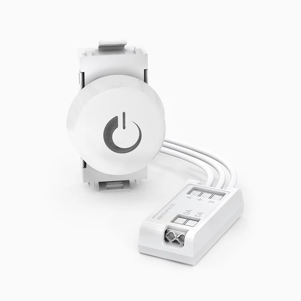 Un bouton simple et intuitif qui permet de contrôler l'éclairage. Avec le système de contrôle zencontrol, le bouton est idéal pour régler la luminosité des luminaires DALI ou des groupes de luminaires. Vous pouvez tourner pour régler la luminosité, appuyer pour allumer/éteindre ou régler la température de couleur de plus froid à plus chaud.