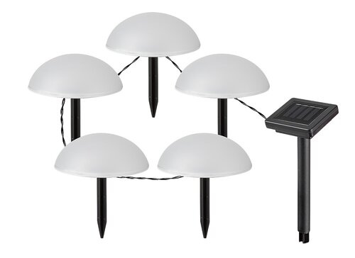 Le luminaire de jardin solaire moderne Treppio constitue une solution pratique et marquante pour l'éclairage du jardin. Le modèle noir tout en plastique, en plus de l'unité de panneau solaire, forme également cinq luminaires circulaires placés dans le sol avec un abat-jour blanc. Le luminaire Treppio est équipé de sources lumineuses LED intégrées de 1 W, d'un flux lumineux de 1,2 lumens avec l'abat-jour et de 6 lumens sans l'abat-jour, et d'une température de couleur de 4 000 K. La durée de vie des sources lumineuses qui diffusent une lumière blanche naturelle est de 20 000 heures, la tension de la batterie est de 1,2 V et sa capacité est de 600 mAh. Les luminaires adaptent la luminosité de la lumière aux conditions extérieures. Les dimensions du luminaire Treppio équipé d'un interrupteur marche-arrêt sont les suivantes : longueur totale 4000 mm, hauteur des luminaires individuels 60 mm, diamètre 150 mm. Le luminaire de jardin a un niveau de protection IP44, ce qui garantit qu'il est protégé contre la pénétration d'objets d'un diamètre allant jusqu'à 1 mm et contre l'eau arrivant de toutes les directions.