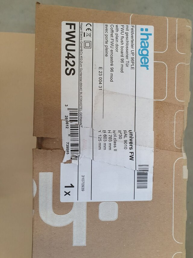 - Veuillez noter que le produit présente des dommages (visibles sur les photos de la galerie). Tableau de distribution encastré FW complet à 96 modules IP30 classe II de Hager