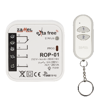 Les récepteurs radio encastrables sont utilisés comme éléments à installer dans des boîtes d'installation en saillie ou encastrées et comme dispositifs installés directement dans les luminaires et autres récepteurs. Le ROP-01 permet de fonctionner dans 5 modes différents (allumage, coupure, monostable, bistable, mode temporisé).