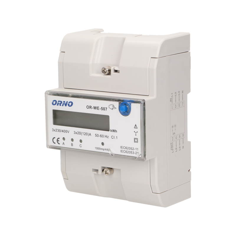 Indicateur d'électricité triphasé, 120A, 5 modules, DIN TH-35mm, bouton supplémentaire