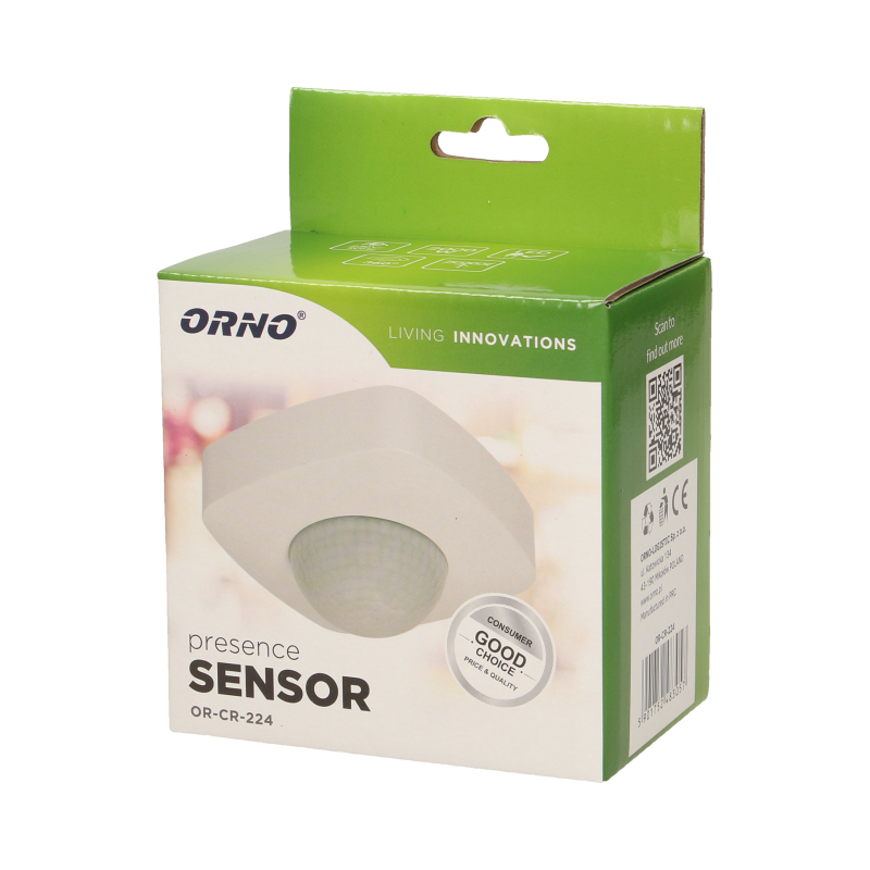 - Détecteur de mouvement et de présence avec 3 capteurs 360°, IP20, OR-CR-224, Orno