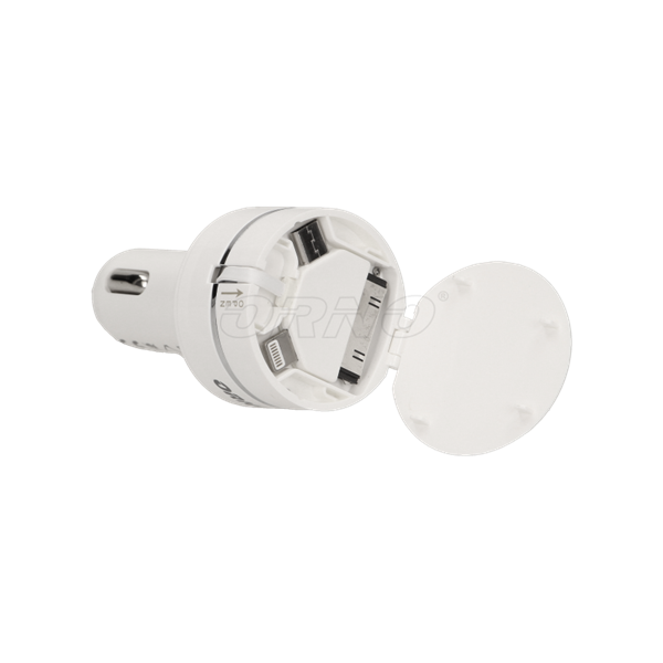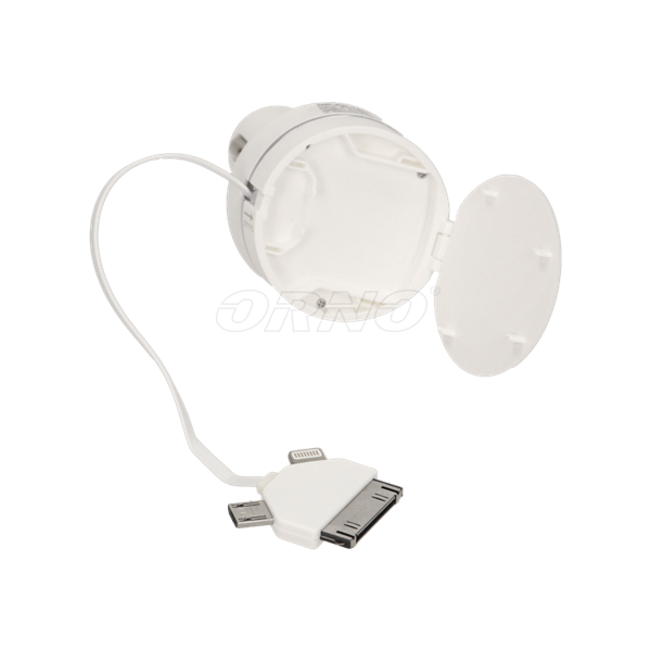 - Chargeur de voiture USB 3-en-1 avec câble rétractable automatiquement, OR-AE-1390 Orno