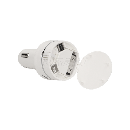 Chargeur USB moderne et compact avec câble rétractable automatiquement. Possibilité de connecter votre appareil via un port USB ou l'un des 3 connecteurs (fiches) : Micro USB standard et connecteurs Apple 8 broches, Apple 30 broches qui s'adaptent à la plupart des téléphones et appareils mobiles du marché, y compris l'iPhone 4/5/6.