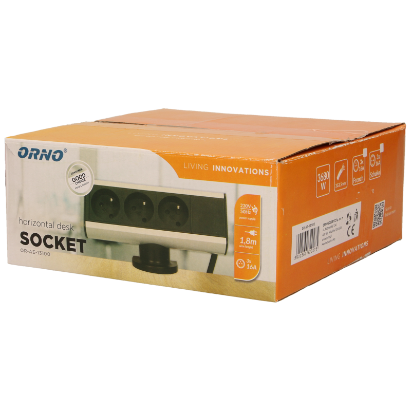- Prise de bureau avec support de montage 3x2P+Z et câble 1,8m Orno
