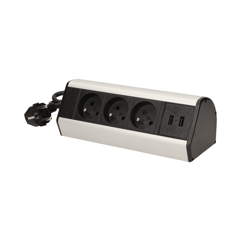 Prise de bureau avec support de montage 3x2P+Z, chargeur USB et câble 1,8m