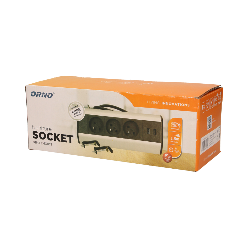 • Prise de bureau avec support de montage 3x2P+Z, chargeur USB et câble 1,8m OR-AE-13105 Orno