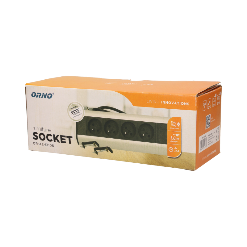 - Prise de bureau avec support de montage 4x2P+Z et câble 1,8m Orno