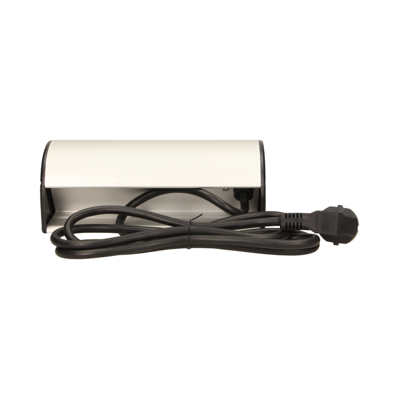 Prise de bureau équipée d'une borne à vis, qui permet de fixer le socle de la prise sur le bord d'un bureau ou d'une étagère sans avoir à percer de trous de fixation. L'appareil est équipé de trois prises de courant avec mise à la terre et d'un câble de 1,8 mètre. Construction métallique robuste.
