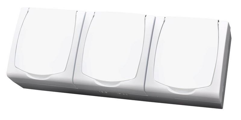 Prise triple + terre schuko avec obturateurs, clapet couleur du produit, blanc Ospel Madera GNH-3NSP/00/w