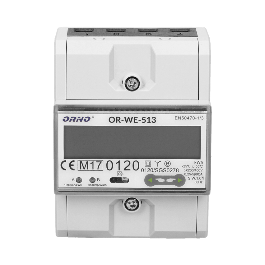 - Compteur électrique triphasé, 80A, MID, 3 modules, DIN TH-35mm OR-WE-513 ORNO