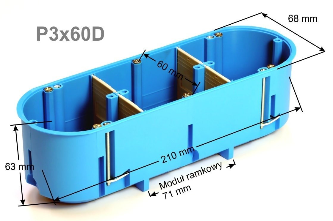 Boîte d'encastrement pour cloisons creuses, plaque de plâtre 3 x 60 mm, profonde, triple MULTIBOX Simet P3x60D