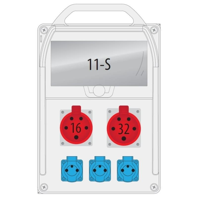 • Prises : 1x16A/5p, 1x32A/5p, 3x250V, 11-S