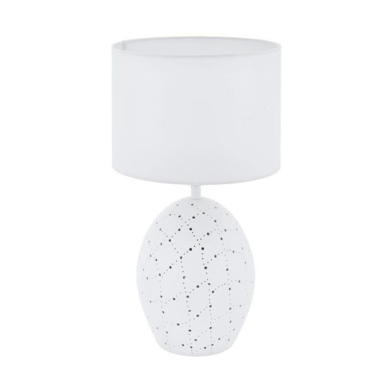 Ce luminaire de table de la série MONTALBANO est composé de céramique et de tissu de couleur blanche et possède un interrupteur à bascule. Le luminaire s’illumine en insérant deux ampoules E27.