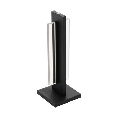 Ce luminaire de table de la série SPADAFORA est composé de profile d’aluminium pulvérisé noir, d’acier et d’éléments acryliques transparents. À l'extrémité supérieure du profil DEL, vous pouvez modifier la luminosité de la lumière à l'aide d'un gradateur tactile. Le luminaire produit une lumière blanche chaude avec une ampoule DEL intégrée.