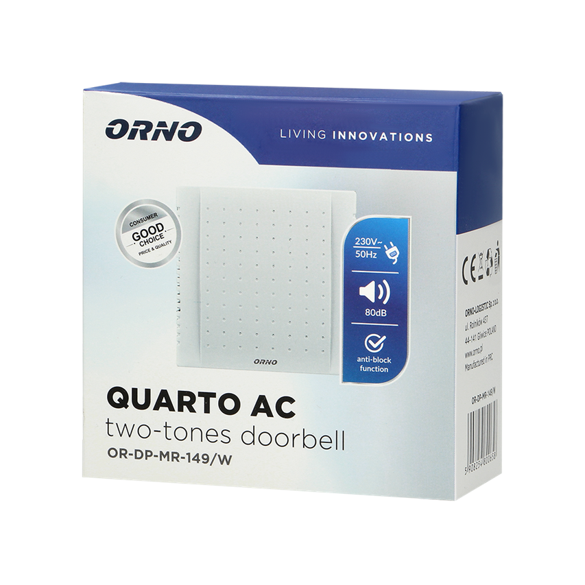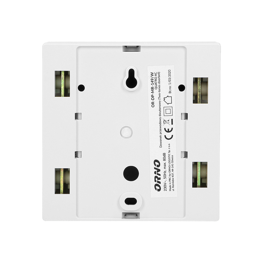 La sonnerie à double tonalité QUARTO est une sonnerie électromécanique facile à installer et à utiliser, dotée d'une fonction anti-blocage. Conçu pour être utilisé dans des pièces fermées avec une installation de sonnerie 230V AC, par exemple dans une maison, un appartement, un magasin, etc.