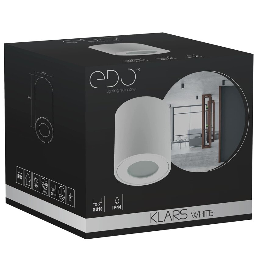 - KLARS Blanc IP44 GU10 luminaire hermétique. Blanc. Lampe de surface à IP élevé (IP44) pouvant être utilisée dans la salle de bains. Lumière uniforme et non éblouissante. S'intègre dans la plupart des intérieurs.
