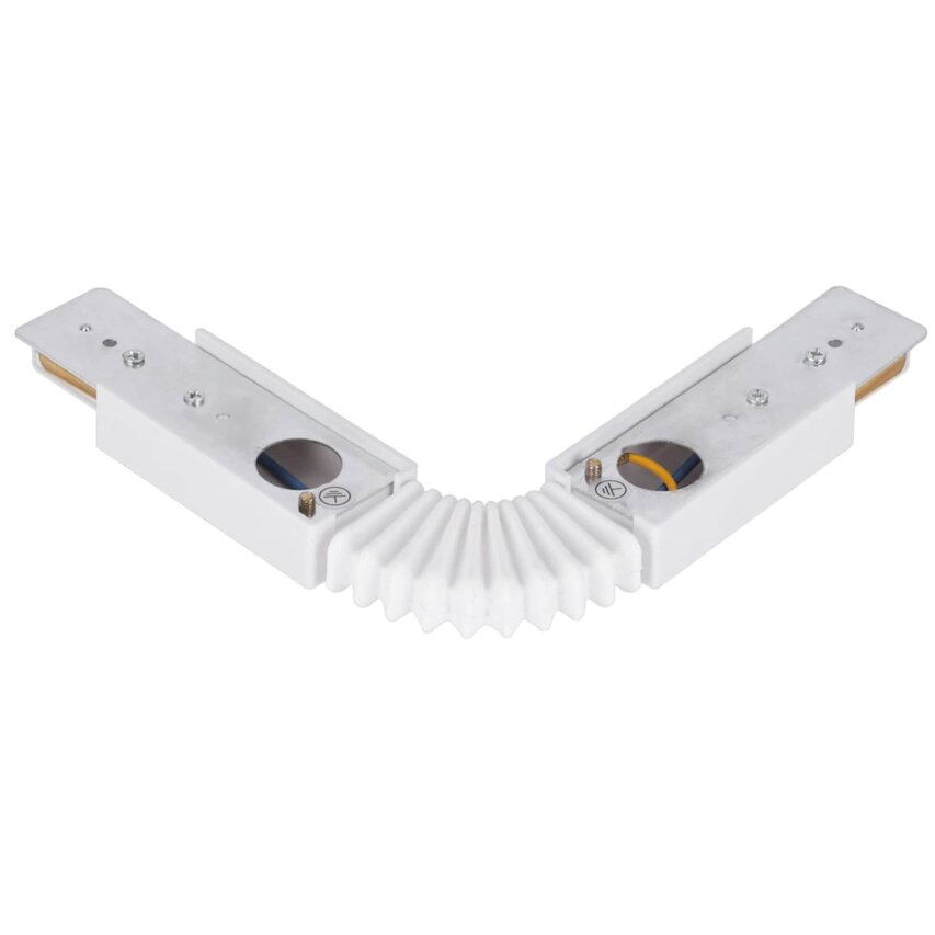 - SEVA Flex Connector Blanc vers rail, flexible. Un composant blanc conçu pour les systèmes d'éclairage afin de relier les rails selon la disposition de votre choix. Il permet de créer des formes de rail personnalisées.