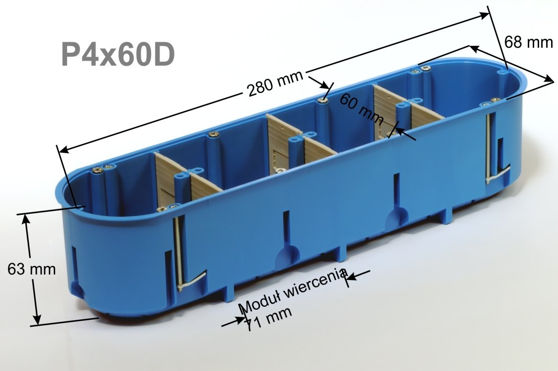 - Cloison creuse, boîte en plaques de plâtre 4 x fi 60 mm de profondeur, quadruple MULTIBOX Simet P4x60D